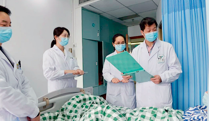 温州市中心医院立体定向肿瘤放疗专病中心团队正在查房。